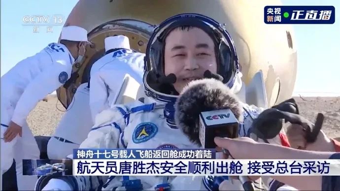 北京時間20244301746分,神舟十七號載人飛船返回艙在東風著陸場成功著陸,現場醫監醫保人員確認航天員湯洪波、唐勝杰、江新林身體狀態良好,神舟十七號載人飛行任務取得圓滿成功。