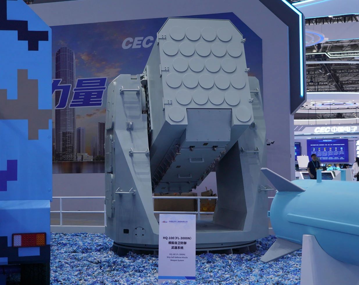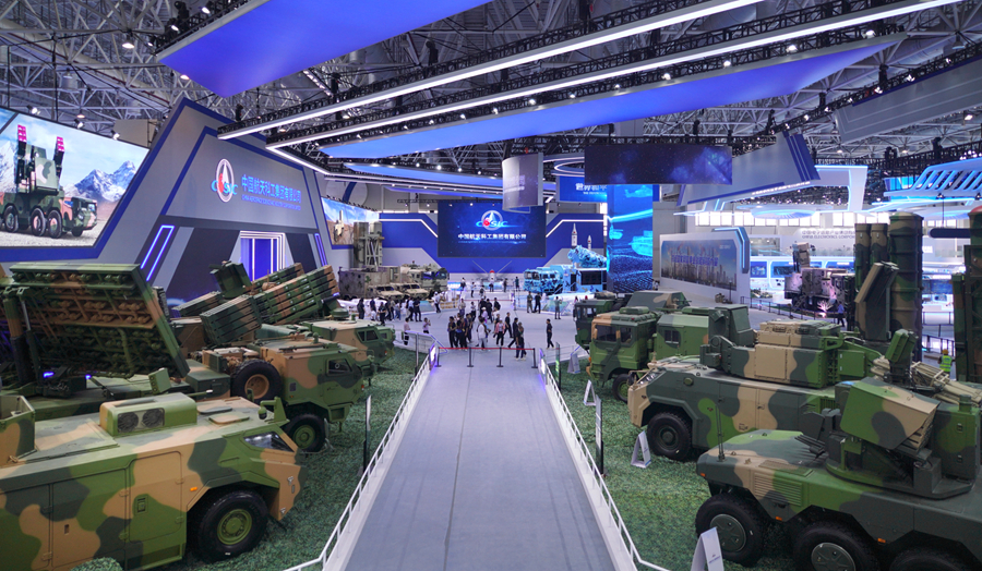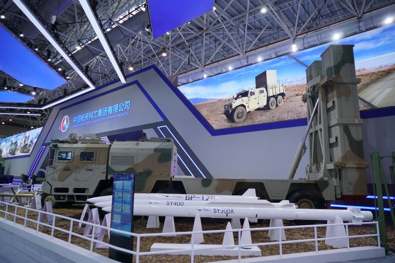 在中國航天科工集團有限公司防空體系展區,HQ-9BE遠程防空武器系統、FD-2000A中遠程防空武器系統、FK-3中遠程防空武器系統、HQ-17AE近程防空武器系統等“明星裝備”煥新亮相。