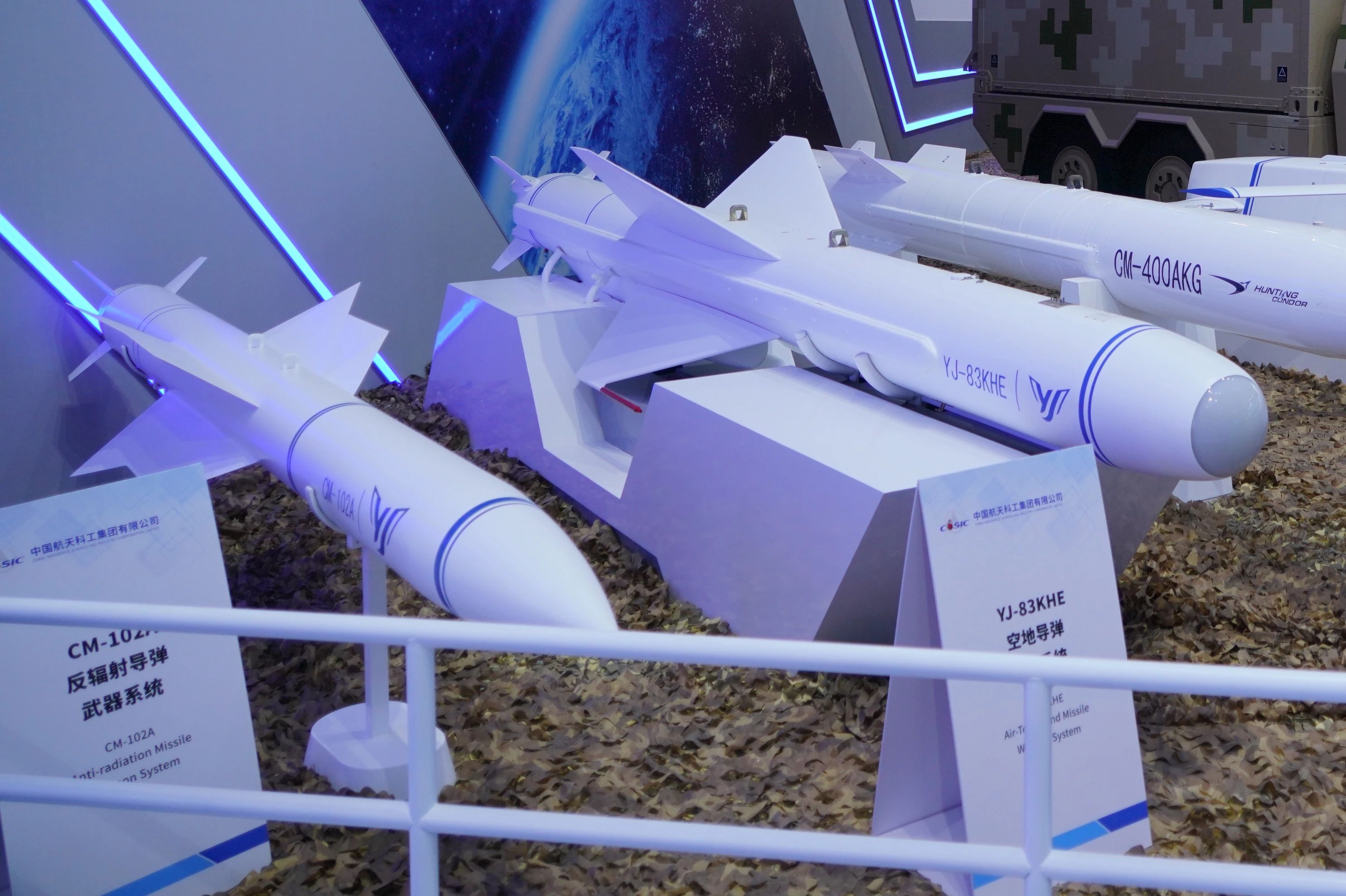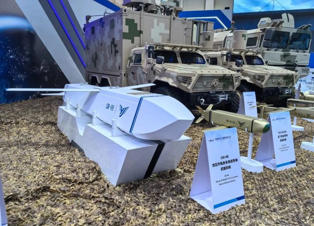 其中,CM-98隱身多用途導彈、CM-502X單兵巡飛攻擊導彈均為首次亮相。CM-98是根據國際市場需求研制的一型隱身多用途導彈武器系統,可在防區外遂行打擊對方高價值目標,具有全天時、全天候使用,高隱身穿透、抗干擾突防、寬飛行包絡、高效能毀傷、易于維護保障等特點。CM-502X能夠高效打擊重型主戰坦克,具有靈巧打擊、多模式簡易發射等特點。