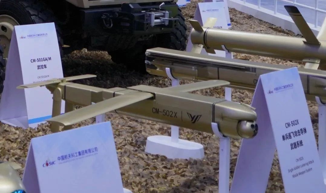 同樣首次亮相的還有CM-502X單兵巡飛攻擊導彈武器系統,能夠高效對付重型主戰坦克,可單兵地面、車載發射,具有靈巧遠程打擊、多模式簡易發射等特點。