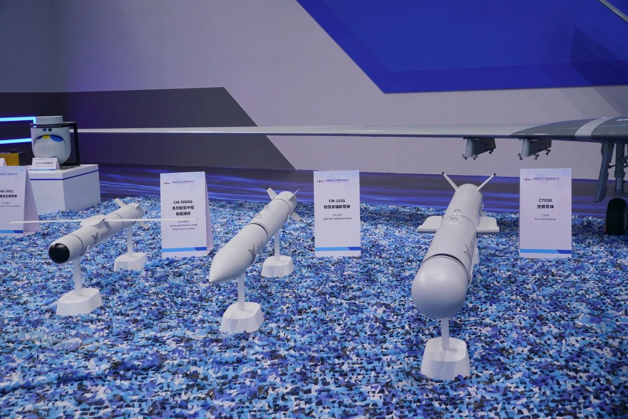 無人作戰體系展出了種類豐富的機載彈藥。典型戰術目標打擊方面,可掛載C705系列防區外導彈、CM-501系列導彈、CM-502系列導彈、CM-506KG彈藥、AG-300系列空地導彈、YZ-200制導炸彈,對目標實施精確打擊。