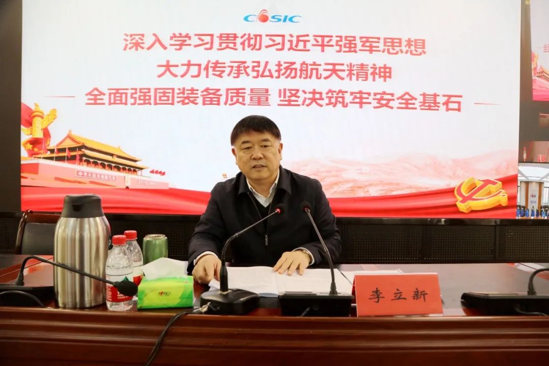 李立新圍繞“深入學(xué)習(xí)貫徹習(xí)近平強(qiáng)軍思想 大力傳承弘揚(yáng)航天精神 全面強(qiáng)固裝備質(zhì)量 堅(jiān)決筑牢安全基石”主題,帶領(lǐng)大家深入學(xué)習(xí)習(xí)近平強(qiáng)軍思想的豐富內(nèi)涵,習(xí)近平總書記關(guān)于發(fā)展航天事業(yè)、加強(qiáng)裝備質(zhì)量、做好安全生產(chǎn)等方面的重要論述和重要指示批示精神。他飽含深情地回顧了中國航天固體動(dòng)力事業(yè)的發(fā)展歷程,系統(tǒng)闡述了航天精神的特質(zhì)內(nèi)涵,緊密結(jié)合六院形勢(shì)任務(wù)和具體實(shí)例,對(duì)學(xué)習(xí)貫徹習(xí)近平強(qiáng)軍思想、大力傳承弘揚(yáng)航天精神,進(jìn)一步強(qiáng)固裝備質(zhì)量、加強(qiáng)安全生產(chǎn)等工作提出了具體要求。