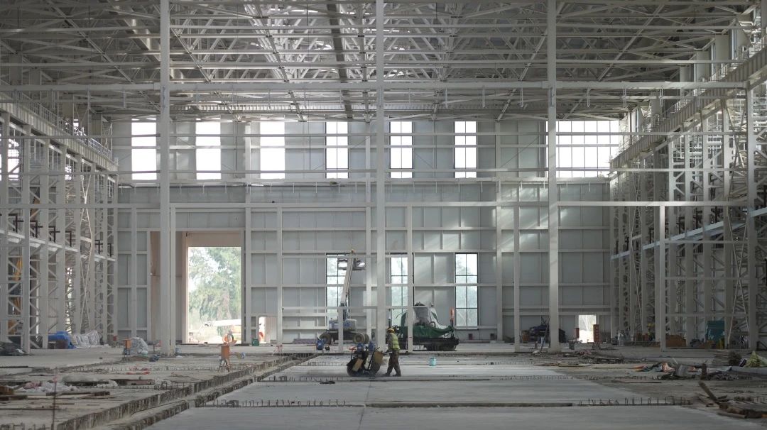 距離發(fā)射場幾公里外,文昌國際航天城牽頭建設(shè)的總裝測試廠房主體結(jié)構(gòu)已然明朗,廠房總面積30000多平方米,低跨廠房能容納2條脈動式生產(chǎn)線,高跨廠房高約50米,將實現(xiàn)火箭分級垂直總裝測試??傃b測試廠房和發(fā)射場將通過一條公路連接起來,這也是海南國際商業(yè)航天發(fā)射中心的創(chuàng)新之處——火箭將首次采用“小三垂”測發(fā)模式,也就是分段垂直總裝、測試、運輸,最終在一號工位完成發(fā)射。