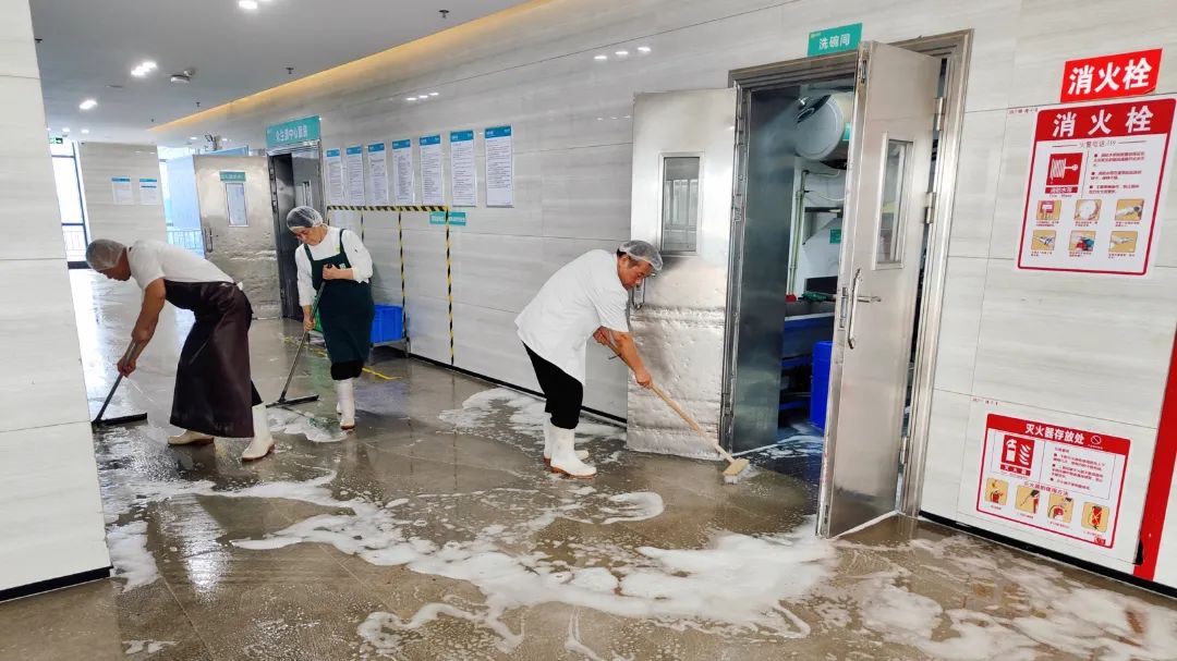 在穩定生產的背后,也始終離不開默默堅守崗位后勤人員的付出。安全保障部協調安保、物業、后勤等服務保障人員集中清洗生活用水水箱,保證水質達標。對園區消防系統例行檢查,現場排查故障,保證消防系統正常運轉。物業、安保常態化服務,提供整潔、舒適、安全的工作環境。食堂提前備餐,準時準點供應可口的飯菜。