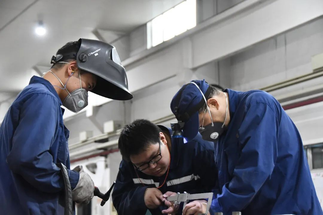 近日,紅陽公司特種制造部集中“火力”,對一產品核心部件發起“沖鋒”。為應對該部件焊縫寬長、焊接點位多、焊后易變形等難點,焊工班及鉗工班開展合作,根據產品性能結構特點進行“2+2+1”排班,有力保障全工序內焊接質量高度可控,同時進一步降低周轉時間,提高生產效率。圖為職工正在進行焊接、鈑金加工。(圖文/胡卓立)