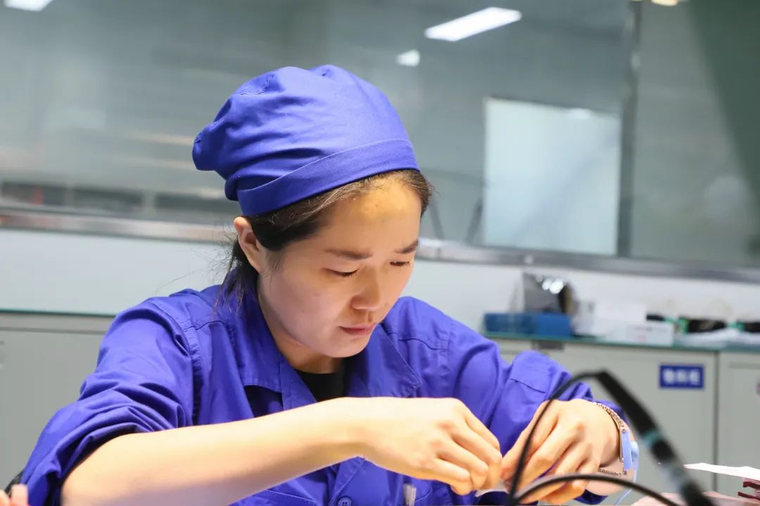 作為電裝中心的王牌導師,小徐憑借精湛技藝和耐心教導,培養出一批批骨干。她不僅以身作則,以專注嚴謹的態度投入工作,更會在徒弟們疲憊時暖心鼓勁:加把勁,我們一定能完成。在這樣團結奮進的氛圍中,大家爭分奪秒、你追我趕,全力推動生產進度。