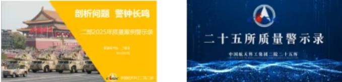 制作二院《質量警示錄》,組織全院6000余人觀看集團公司和二院質量警示錄。二部、25所、206所、699廠等單位結合實際情況,編制了本單位質量案例警示錄并在本單位循環展播。
