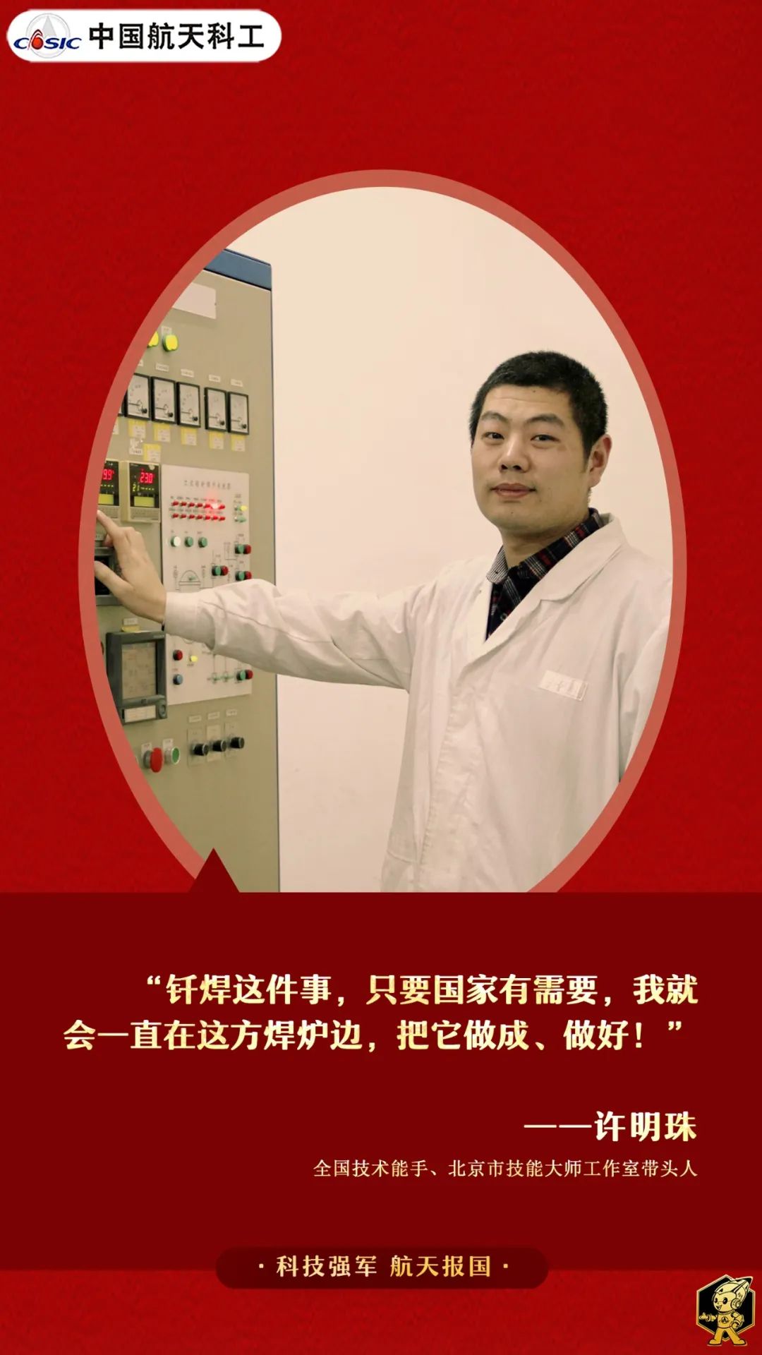 “國家有需要,我一定要做成、做好。”這是許明珠從業(yè)24年踐行的諾言,也是他對(duì)工匠精神的生動(dòng)詮釋。從少年到匠人,從學(xué)徒到大師,許明珠用執(zhí)著和堅(jiān)韌打造釬焊產(chǎn)品,他深諳釬焊之道:將自己的青春“熔”進(jìn)工藝并化身為最好的釬料,與祖國航天事業(yè)緊緊焊在一起。