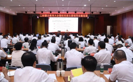 625日,二院召開深入貫徹中央八項規定精神學習教育警示教育大會暨院黨委主要領導專題黨課輔導會。會上,郭大勇以《堅持警鐘長鳴、以案為鑒,為奮力推進二院高質量發展提供有力作風保障》為題作專題黨課授課并開展警示教育,通報集團公司近期警示教育大會、集中整治違規吃喝專題推進會議精神,并結合集團公司和二院發生的典型案例,帶領大家深刻反思在貫徹落實中央八項規定精神方面存在的問題差距。