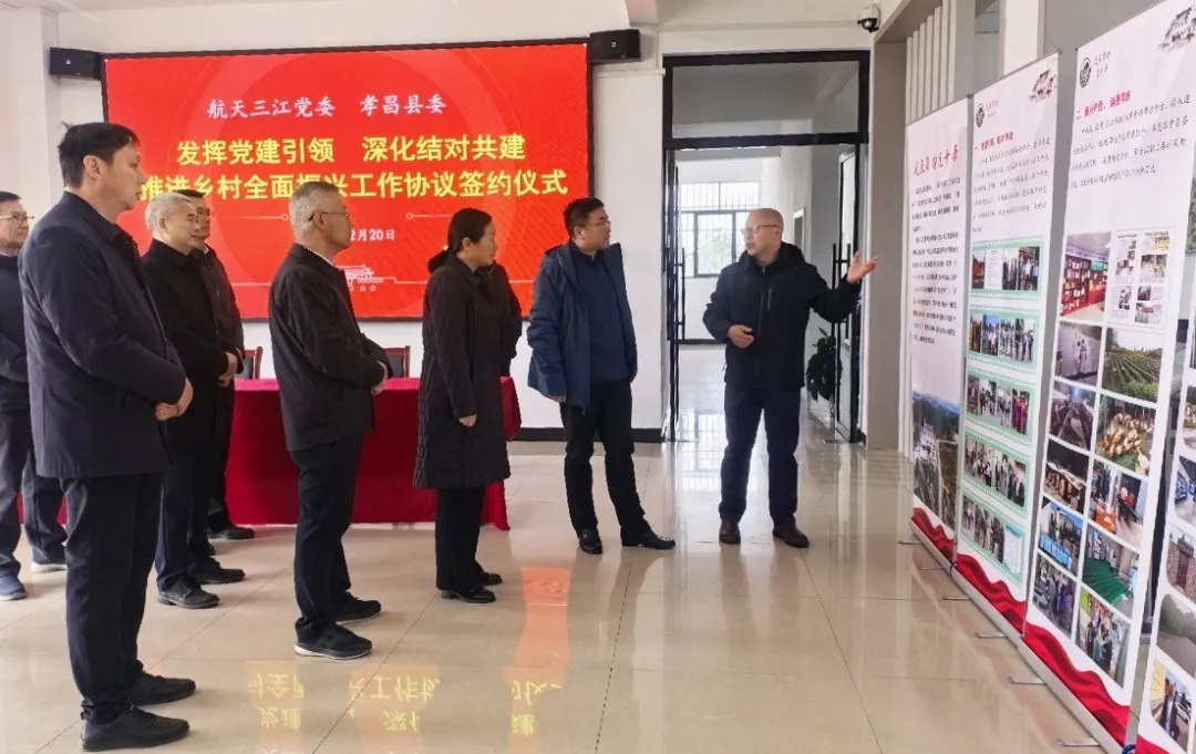 在航天科工九院定點(diǎn)幫扶孝昌縣小河鎮(zhèn)仙雨砦村十周年之際,12月20日,航天科工九院黨委書記、董事長(zhǎng)高輝文一行深入駐點(diǎn)村,就發(fā)揮黨建引領(lǐng)、深化結(jié)對(duì)共建,推進(jìn)鄉(xiāng)村全面振興工作開展調(diào)研,并與孝昌縣委簽署《結(jié)對(duì)共建協(xié)議》。這標(biāo)志著雙方在成功實(shí)踐基礎(chǔ)上,開啟了新一輪為期5年的深度結(jié)對(duì)共建合作,共同繪制企地融合、振興鄉(xiāng)村的新藍(lán)圖。孝昌縣委書記等有關(guān)方面領(lǐng)導(dǎo)參加調(diào)研。