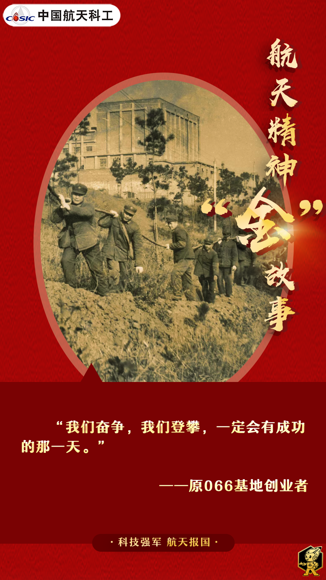 人人都是英雄,個個豪情萬丈。憑著堅定信念,066人硬是扛了下來。經(jīng)過十幾年的奮斗,開創(chuàng)了三線基地獨立研制航天型號全武器系統(tǒng)的先河。(海報/張藝馨 文/陳誠 崔冬娜)