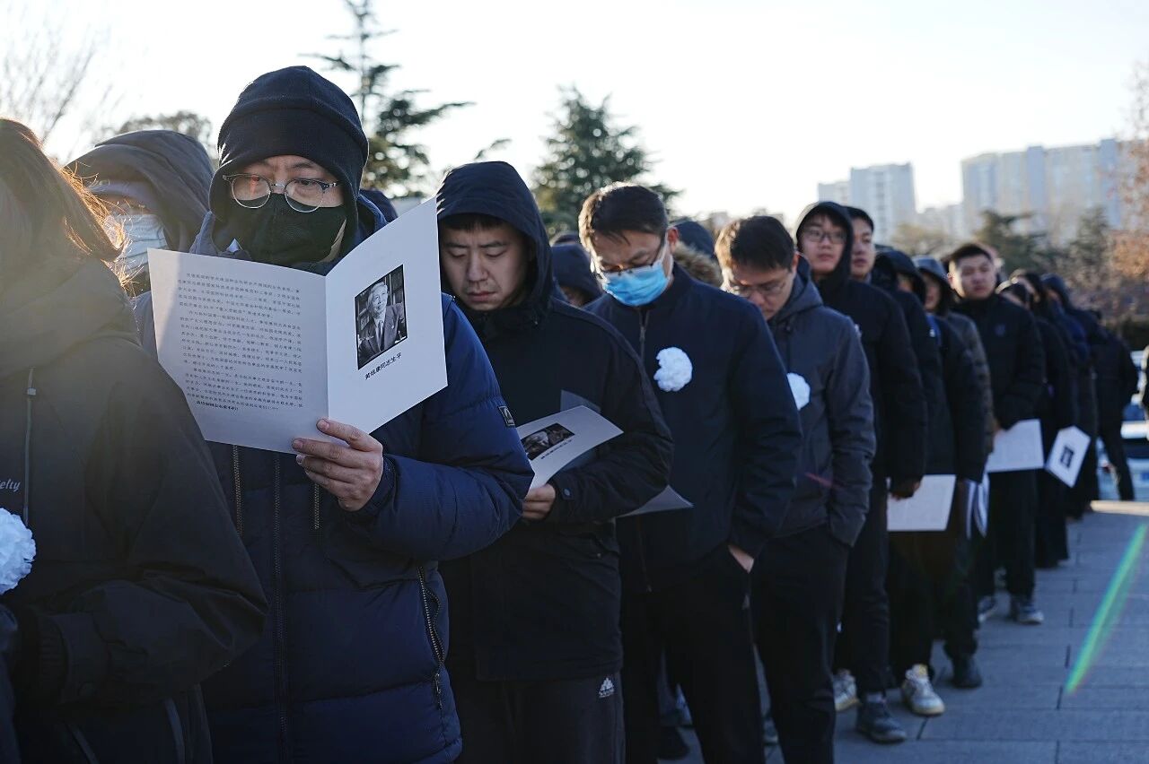 清晨,參加告別的人群早早聚集在北京市八寶山殯儀館,人們懷著無比哀痛的心情,依依不舍地送別黃培康同志。