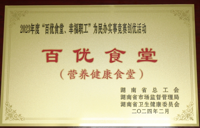 日前,由湖南省總工會(huì)、湖南省市場(chǎng)監(jiān)督管理局湖南省衛(wèi)生健康委員會(huì)共同組織開(kāi)展的2023年度“百優(yōu)食堂、幸福職工”為民辦實(shí)事競(jìng)賽創(chuàng)優(yōu)活動(dòng)結(jié)果出爐,中國(guó)航天科工湖南航天職工食堂“食”至名歸,喜獲2023年度百優(yōu)食堂(營(yíng)養(yǎng)健康食堂)榮譽(yù)稱號(hào)。