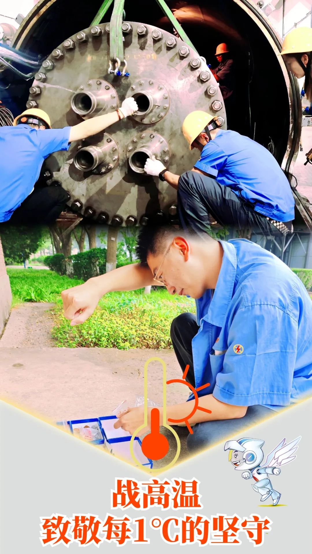 高溫的“烤”驗擋不住動力人的工作熱情。31所試驗臺的一線人員在試驗后馬上進行試驗件換裝、大型設(shè)備下架、螺栓緊固、法蘭對齊等工序,為更好地推進后續(xù)工作,設(shè)計人員小鄭在室外現(xiàn)場清點零件,哪怕一顆螺釘也要做到心中有數(shù)。不同的崗位,同樣的一絲不茍、周到細致。如果堅守有顏色,那一定是“航天藍”。