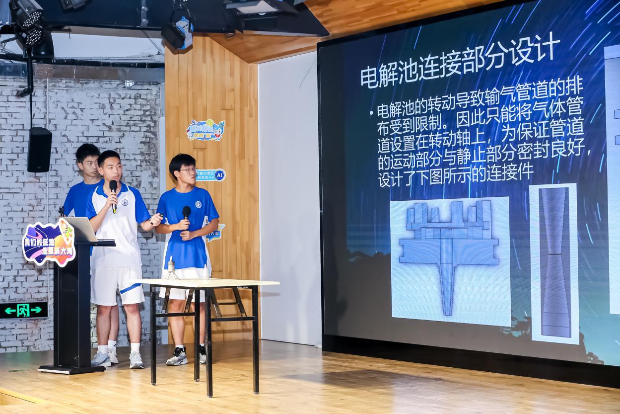 活動(dòng)伊始,大家通過(guò)視頻回顧了2023年航天知識(shí)萌探“團(tuán)”活動(dòng)的精彩瞬間,展現(xiàn)了青少年在航天科普知識(shí)中的探索與成長(zhǎng)。隨后,來(lái)自交大附中的甄晟哲、曾一凡、麻時(shí)維三位同學(xué),作為青少年代表上臺(tái)分享了他們的科技作品——深空探測(cè)用水工質(zhì)動(dòng)力系統(tǒng)研制,用親身的實(shí)踐與成功,向在場(chǎng)的領(lǐng)導(dǎo)、嘉賓和觀眾傳遞了航天知識(shí)的感悟與精神。