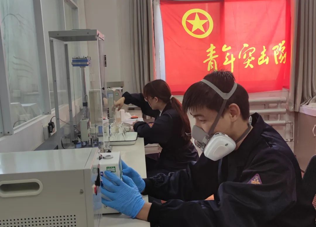 面對新目標(biāo)、新要求,突擊隊員們敢于“亮劍”,始終沖鋒在前。“小李,有急活,快把你的隊員召集起來!”在102化學(xué)分析組,組長小胡對“飛躍”青年突擊隊隊長小李說道。原來是裝藥分廠先后送來一批原材料,需要在規(guī)定時間內(nèi)完成該批原料的水分、粘度、分子量等測試。突擊隊成員聞訊而動,“悅悅,這個數(shù)據(jù)有點異常,你幫我看一下。”“不是什么大問題,應(yīng)該是參數(shù)設(shè)置有問題……”