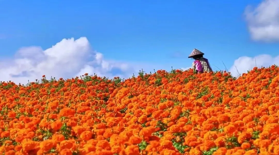 銷路打開,老百姓就得了實惠;民心所向,產業就迎來了春天。富源縣萬壽菊的種植面積從2023年的兩三千畝增加到2024年的13000多畝。富源縣一位局長此前對萬壽菊的種植持保留和觀望的態度,2024年,他頻繁前往鄉鎮調研,回來后激動地和胡副縣長說:“你們是怎么做到的?原來看不到的萬壽菊,現在星羅棋布地遍布全縣大部分鄉鎮!能讓這么多老百姓參與進來,說明這個項目得到了老百姓的認可,項目的前景一定非常好。”
