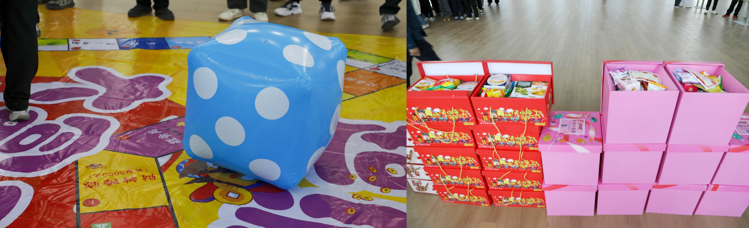 活動現(xiàn)場搭建巨型游戲棋盤,青年們化身各路玩家,通過擲骰子、賺金幣、開盲盒解鎖趣味十足的任務(wù)。青年們分組協(xié)作,共同解鎖游戲中的各種挑戰(zhàn)。頭頂上方旋轉(zhuǎn)的骰子開盲盒般地“挑選”任務(wù)窗格,大家群策群力破解任務(wù)。5支隊(duì)伍在追逐中一步步接近終點(diǎn),“友誼金幣”在不經(jīng)意間越壘越高,默契值也在一次次互動中不斷增長。