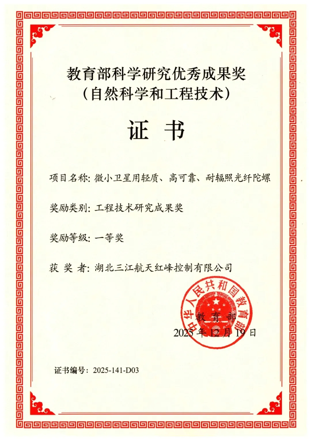近日,航天科工九院紅峰公司申報(bào)的微小衛(wèi)星用輕質(zhì)、高可靠、耐輻照光纖陀螺項(xiàng)目榮獲2025年度教育部科學(xué)研究?jī)?yōu)秀成果獎(jiǎng)一等獎(jiǎng)。