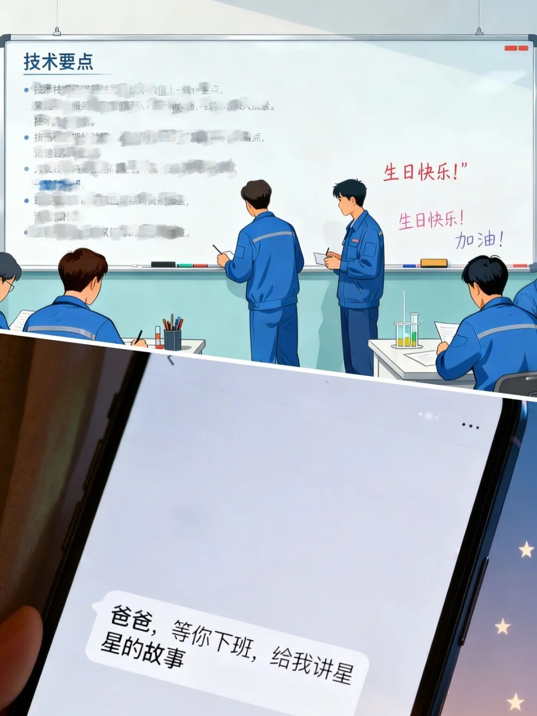 休息區(qū)的白板上,一邊是清晰的技術(shù)要點(diǎn),一邊是暖心的鼓勵(lì)話語(yǔ)與簡(jiǎn)潔的生日祝福。在緊張有序的工作節(jié)奏中,團(tuán)隊(duì)的專業(yè)協(xié)作與人文關(guān)懷,構(gòu)成了最堅(jiān)實(shí)的支撐。小張的手機(jī)里,是孩子發(fā)來的語(yǔ)音:“爸爸,你又在給產(chǎn)品‘看病’嗎?等你下班,給我講星星的故事。”他笑了笑,眼神里滿是溫柔與堅(jiān)定。“我們的工作,就是確保這些‘星星’能安全地飛到天上去。這份堅(jiān)守,家人一直都懂。”