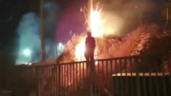 起火現(xiàn)場(chǎng)情況復(fù)雜,周邊遍布高低錯(cuò)落的枯草。其中,稀疏低矮區(qū)域的明火已熄滅,但一處約10平方米的茂密草叢仍在猛烈燃燒。在風(fēng)勢(shì)助推下,火苗迅速蔓延,一人多高的火舌在風(fēng)中狂舞,引燃周邊枯草,一旁電線桿上的線纜也已開(kāi)始燃燒,險(xiǎn)情持續(xù)升級(jí)。