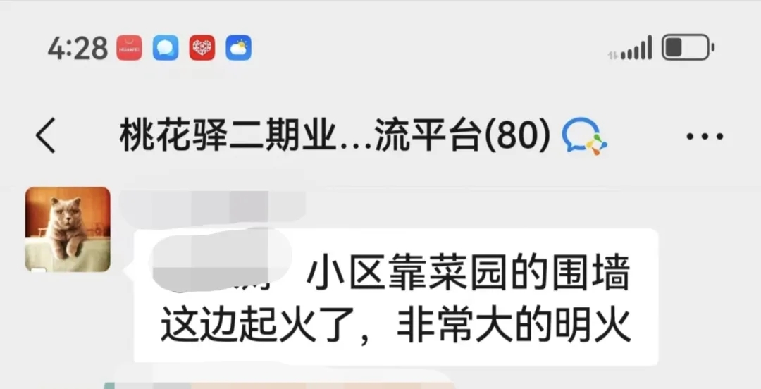 當(dāng)晚,剛剛吃過(guò)晚飯的鮑師傅正在休息,忽然看到業(yè)主群里有人發(fā)了一條消息——“小區(qū)靠菜園的圍墻這邊起火了