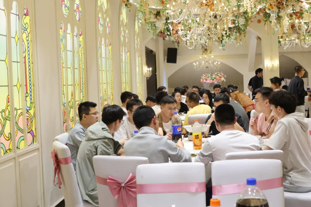 趣味互動過后,大家漫步花海與城堡之間,在自然愜意的氛圍中卸下拘謹、慢慢熟悉,讓緣分悄然萌芽。傍晚時分,集體晚餐為這場浪漫之約增添了更多溫馨,大家共享豐盛美食,在城堡餐廳里細品佳肴、暢聊心事,延續歡樂氛圍,讓友誼在美食與交談中持續升溫。